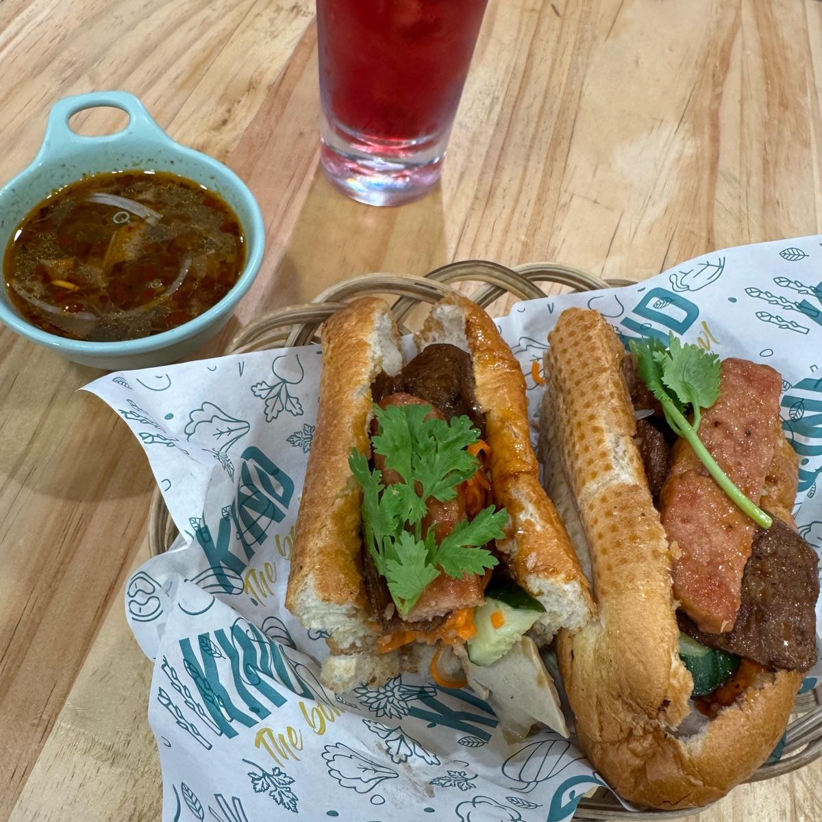 Love this banh mi with the homemade walnut mushroom pate! And you get a small bowl of hot & spicy soup with it/