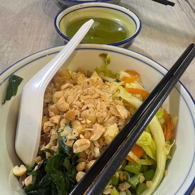 Top dish, especially if you like noodles ( i promise there are noodles under all that veg) and you love thunder tea. I especially love the healthy serve and variety of veggies. The dish is topped with peanuts, caipo and tofu too. The broth was so so good, and brought everything together. Everything about this dish was beautiful. The portion was pretty big too, mom and i shared this. You could also get this as part of a set lunch on weekdays. #comfortfood #Vegankolomie #kolomee #kolomie #thundertea #leicha #thunderstruck