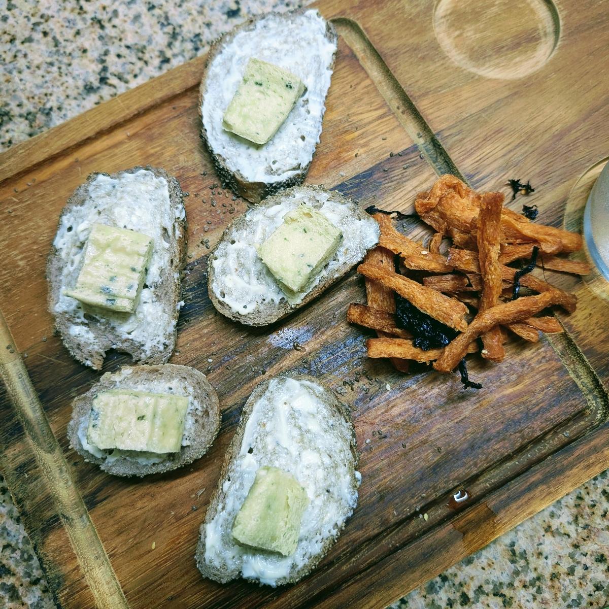 I am absolutely in love with their stuff 🥰 If I had to choose a non-dairy base for #butter (actually, for anything at all 😝) then it would be #soy (#teamsoy 💪💪💪) This one combines the fruity acidity of #lemon with a saltiness and light sweetness on the palate, an absolute win! Here it's holding together an open-faced sandwich that I made for myself (for the other ingredients check out my subsequent reviews 😉), but I'm already dreaming up pasta recipes! 😃 #ditchdairy already!