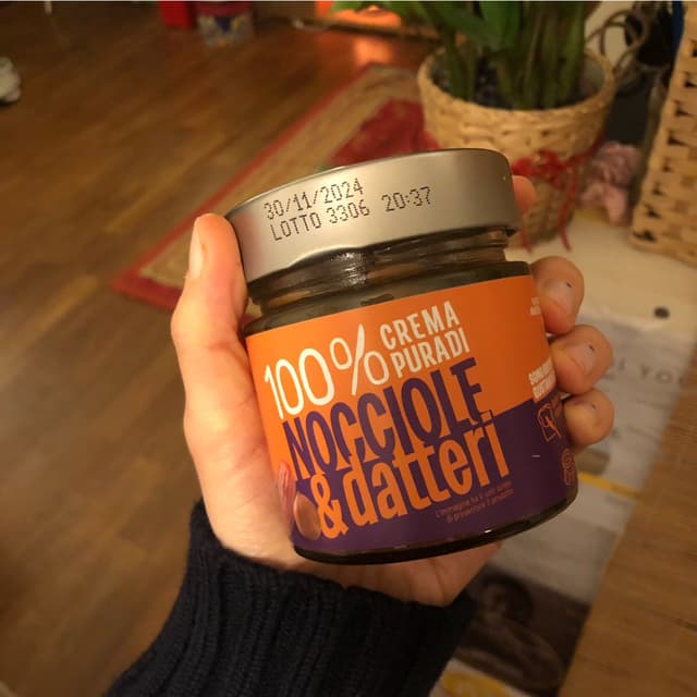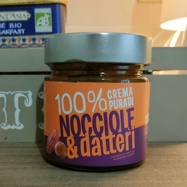 STUPENDA crema spalmabile di nocciole e datteri 🤤 rispettivamente 80 e 20%. Dolce ma non troppo, cremosissima e deliziosa, mi è piaciuta molto.