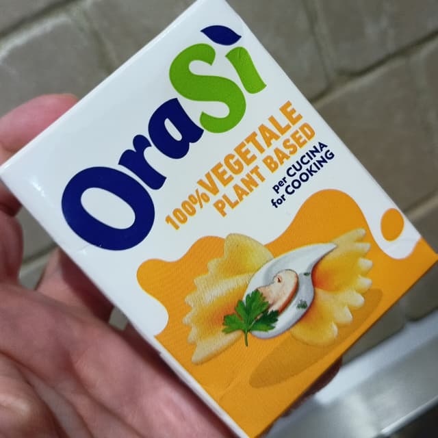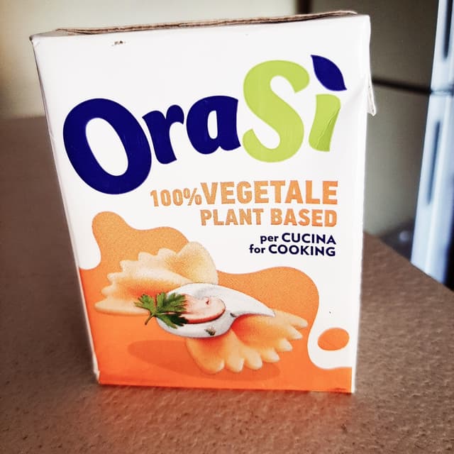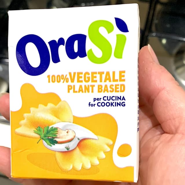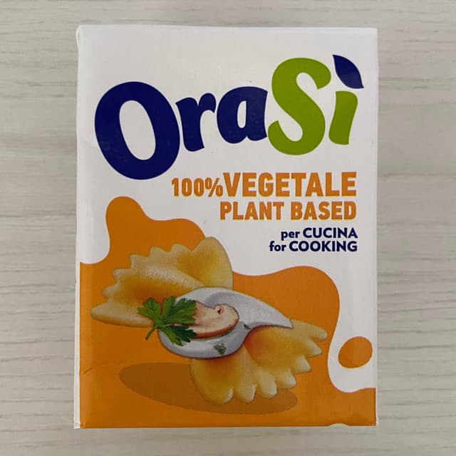 I looked for Hoplà 100% vegetable cream (the one in the pink package) but, they only had the one with milk protein 😞. So I bought this OraSì 100% vegetable cream and liked it. I was going to use it to make panna cotta and was concerned that it was slightly salty. Actually the salt is not noticeable, in fact it is sweetish. Ingredients Water, soybean extract (water, hulled soybeans (2%)), sunflower oil, modified starch, sugar, maltodextrin, stabilizer (locust bean gum), emulsifier (sunflower lecithin), sea salt, natural flavor, vitamins (D, B12).