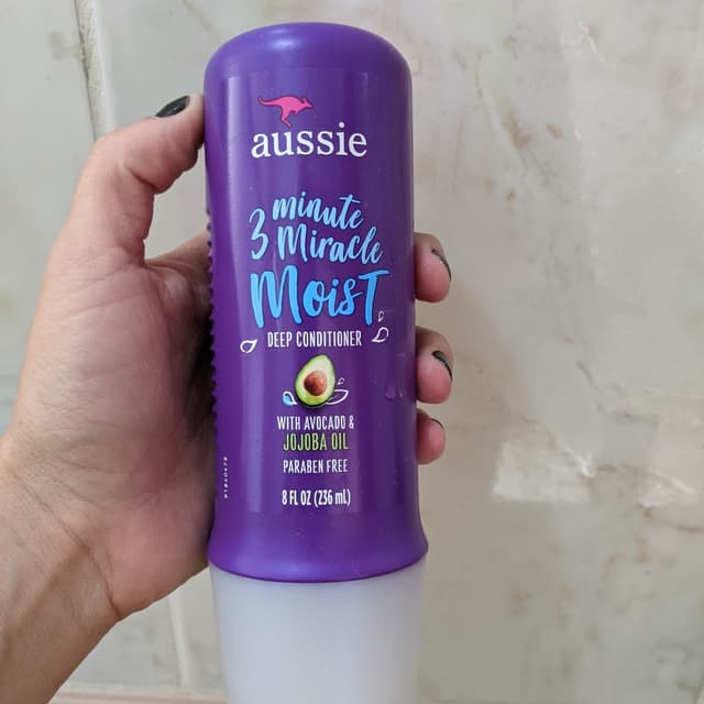 Condicionador Aussie, controle de frizz. Tratamento em 3 minutos. Muito bom!