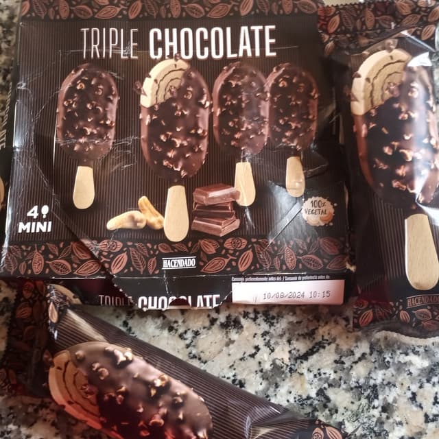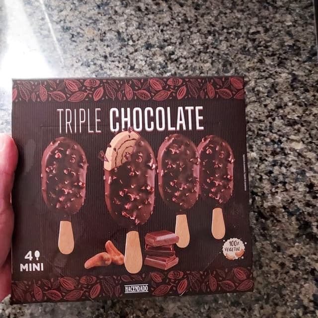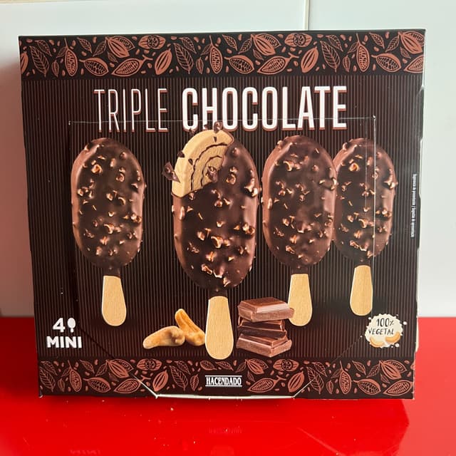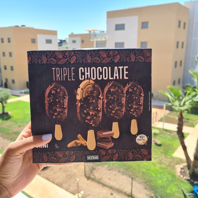 Mini helados veganos. Vienen cuatro y tienen intenso sabor a chocolate.