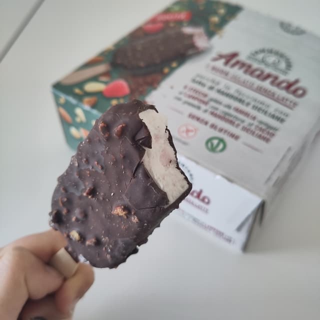 Che dire di queste delizia di stecchi , solamente wow 😋 riunisce tutti i miei sapori favoriti : gelato alla vaniglia con latte di mandorla variegato al lampone con copertura al cacao e granella di mandorle siciliane, semplicemente strepitoso! Sono interamente realizzati con ingredienti di origine vegetale #senzaglutine
