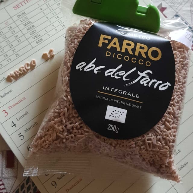 Ottima pastina di farro integrale a forma di letterine io la mangio spesso con zuppa vegan