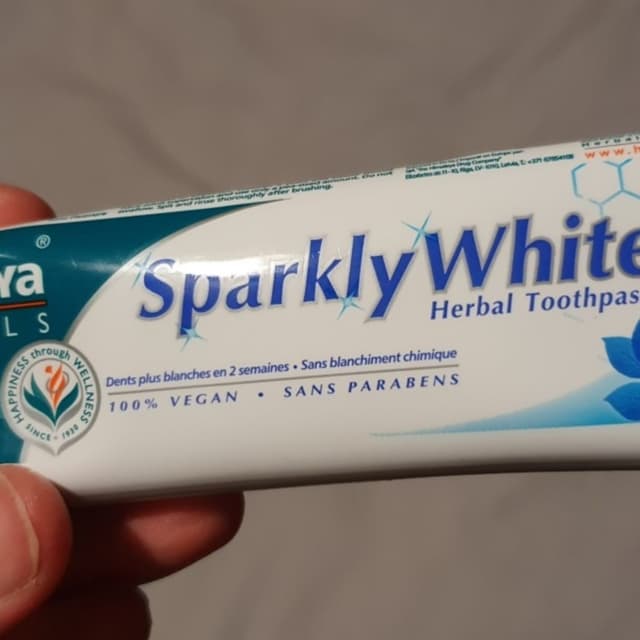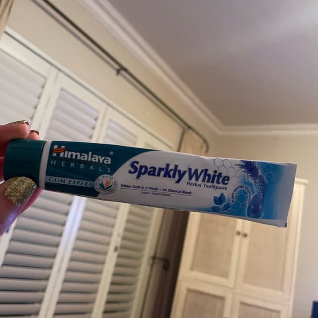 Himalaya Herbals Sparkly White Herbal Toothpaste 75ml: a 100% natural and 100% vegetarian toothpaste that was formulated with plant enzyme technology to whiten teeth in two weeks. Also contains almond shell and miswak to protect gum health and prevent bleeding. Free from chemical bleach, fluoride and parabens * awsome product *