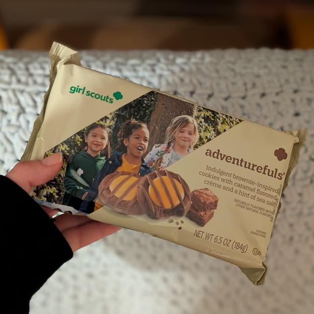 Crunchy, #chocolatey and tasty. It’s hard for just two of these little cookies to be just one serving, but a good idea because #highinsugar and #highinsaturatedfat. I didn’t really taste any caramel flavor, and it’s no wonder after I read the ingredients that there is no actual caramel, just caramel color. That’s OK though because these don’t need to be any more yummy than they already are! Despite how artificial these are (some strange and not so good ingredients), I do like that they added molasses, which is a pretty good source of iron. Not my favorite of #girlscoutcookies and probably not one I’d get again (especially since this isn’t offered where I live), but it was definitely nice to try this.