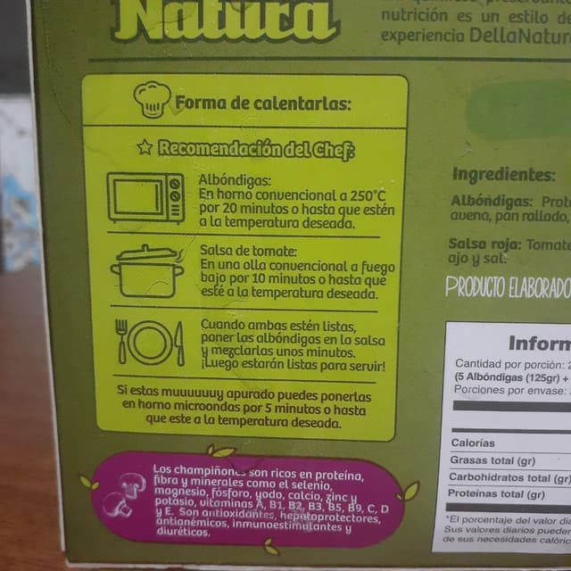 Vienen 10 albóndigas con salsa en sobre. La salsa se calienta en una olla por unos minutos y las albóndigas se hacen en el horno o si no en el microondas, luego las combinas. Me gustaron mucho y la salsa roja les da un buen sabor. Las recomiendo porque sacan de apuro si es que tienes que prepararte algo rápido Las compré en oferta en la página web de plaza vea