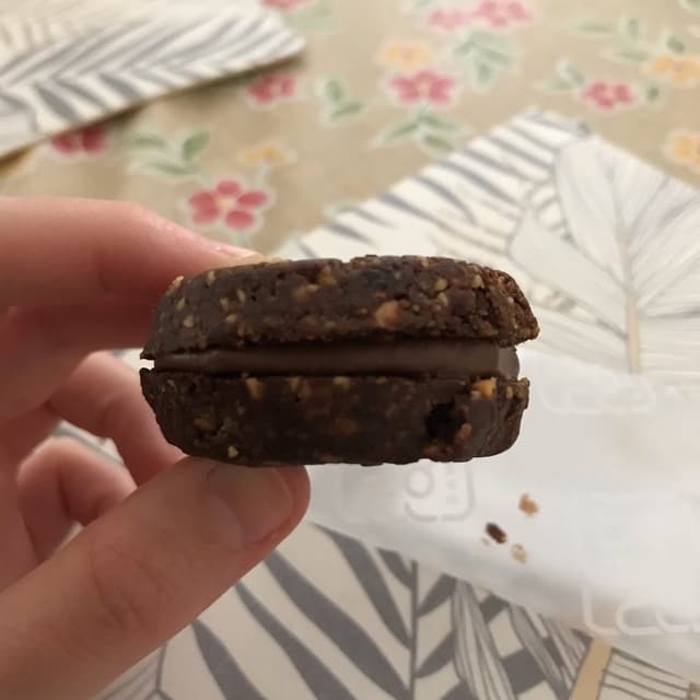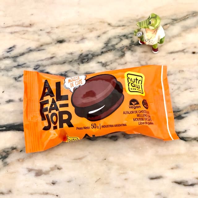 Muy rico este alfajor! Tiene trozos de frutos secos, eso se destaca. Lo que no le sentí fue el sabor a café jaja