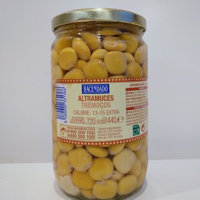 Altramuces ácidos envasados con sal, acidulantes, antioxidante y conservante. En mi opinión tiene bastantes productos químicos que no gustan, pero lo cierto es que es un producto que sí le pasan unos pocos días y está hecho de manera natural solo con agua y sal, comienza a tener una apariencia y olor bastante poco atractiva. Siempre preferire el producto artesano pero no es fácil conseguir los granos para hacerlos. La planta del altramuz es una de las más bonitas que he visto en la agricultura, además es muy buena para la tierra por aportar nutrientes, pero no sé porque se consume de manera natural tan poco, ya que es una buena fuente de proteínas vegetales y la planta es fácil de cultivar y beneficia a los cultivos. Entiendo que puede ser porque no es un producto atractivo, tiene un nombre feo y se ha unificado al mundo del alcohol...apenas usándose en la cocina. Si estos altramuces de Hacendado fuesen tan sanos como lo es el altramuz en su estado original, le pondría 5 estrellas. Tampoco me gusta la etiqueta, que intensifica el amarillo y lo convierte en algo festivo, resaltando de nuevo la asociación con el alcohol. Envase de 690 gramos Producto de La Rioja #glutenfree #veganforanimals #abillionlove #vegansfromcanaryislands #tenerifevegan #veganspain
