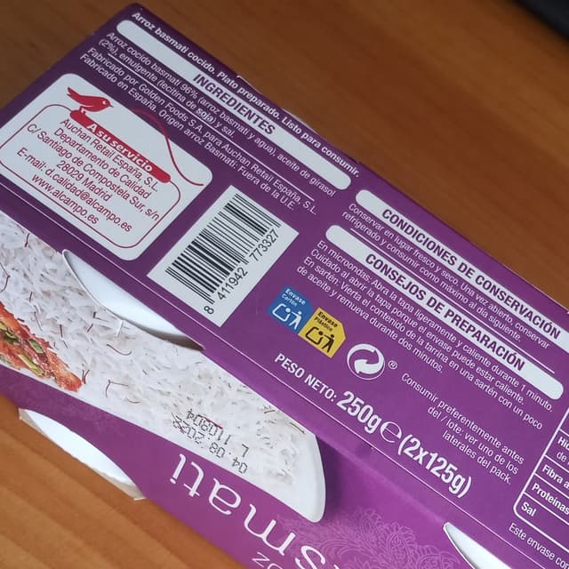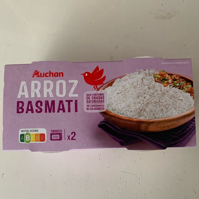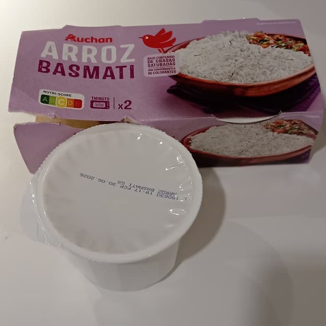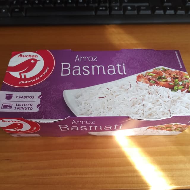 Arroz cocido Basmati, viene en tarros individuales que se calientan un minuto al microondas y listo. Está muy bien para cuando no hay mucho tiempo para cocinar o para llevar. Buen precio.