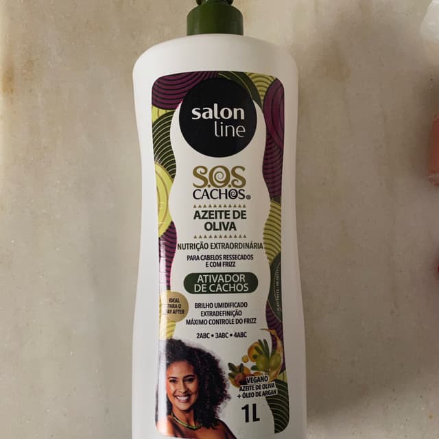 Ativador de cachos linha SOS cachos. Azeite de oliva, vegano e sem testes. Frangancia suave, efeito poderoso.