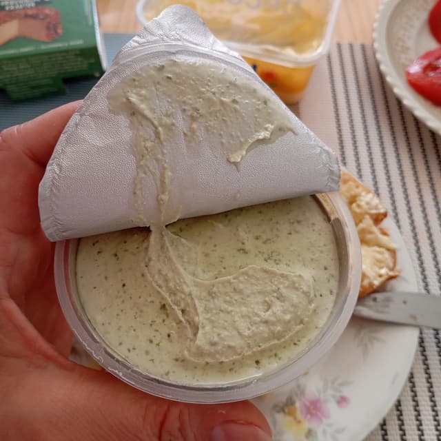 Bärlauch Frischkäse 🌿 (Wild Garlic Cream Cheese) Wild garlic cream cheese... taste is good. I had it as spread with some tomatoes, cucumbers and radish. Bought: denn's biomarket, Berlin, Germany Price: 2,49 € #creamcheese #wildgarlic #nodairy #ditchdairy #dairyisscary #dairyismurder #notyourmomnotyourmilk #veganfortheanimals #animalsfirst #veganproud #keintieristegal August 24, 2025