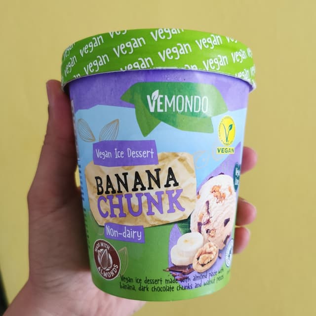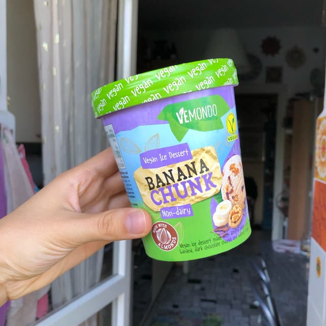 The best vegan ice cream I’ve ever bought. I love banana ice cream with dark chocolate chunks, and almond paste and walnut big pieces are a perfect match! So happy to find it, definitely my fav! 🖤