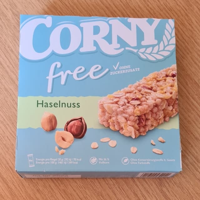 These hazelnut bars with whole grain taste really sweet. Although they don't have a vegan label, they are vegan. Found them at Edeka.