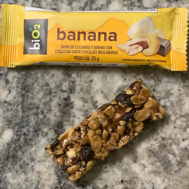 Bastante castanha , banana passa muito boa . Chocolate na medida . Muito boa