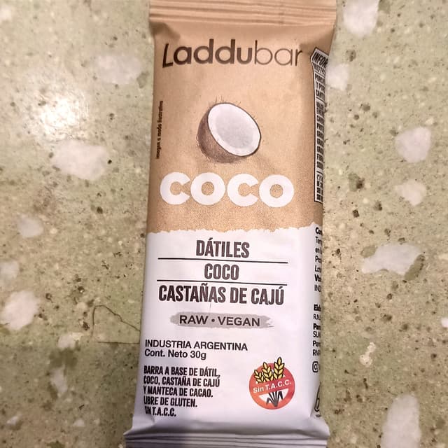 LADDUBAR COCO Ay! La verdad no me gustó 🙃 Al final se siente algo dulce pero no es muy rica Si es muy nutritiva Esto está muy bueno para quien les gusta comer raw y sano y nutritivo. Si querés comer algo dulce pero cuidando la salud. Si esperás que sea igual a cualquier golosina, no te va a gustar para nada... Peso: 30g x12 Con un incomparable sabor, la barrita de coco tiene la combinación perfecta entre coco y dátiles. Las escamas de coco permiten disfrutar su sabor como si realmente lo estuvieras comiendo directo de la palmera. Ingredientes Dátiles Coco en escamas Castañas de cajú Manteca de cacao RAW - VEGAN - SIN T.A.C.C - KOSHER