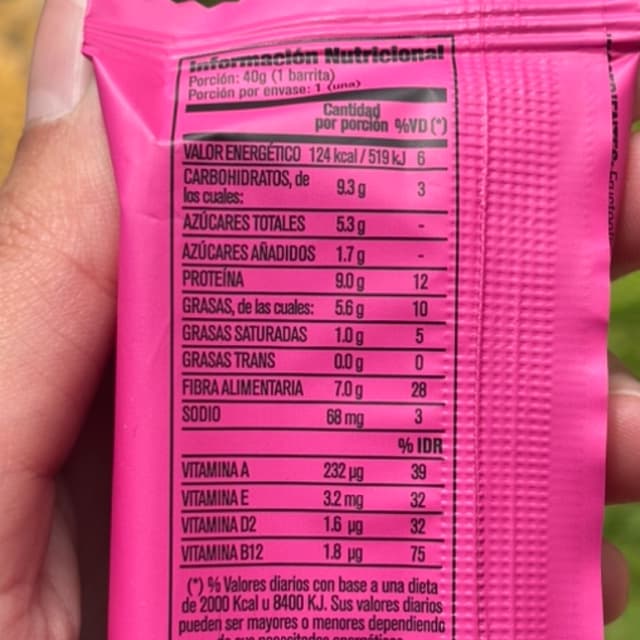 Esta de avellanadas me parece la más rica. Tiene como ingredientes principales proteína de arveja, avellana, chocolate, pasta de maní, entre otros. Lo caracteristico de esta barrita es que aporta 9 gramos de proteina y que es estilo chewy De todos modos aunque sea rica como punto negativo es que la porciónes diminuta. Y que en la mayoria de las dieteticas las venden carisimas. En Zoja estan en promo 2x$4000 (oct 2025)