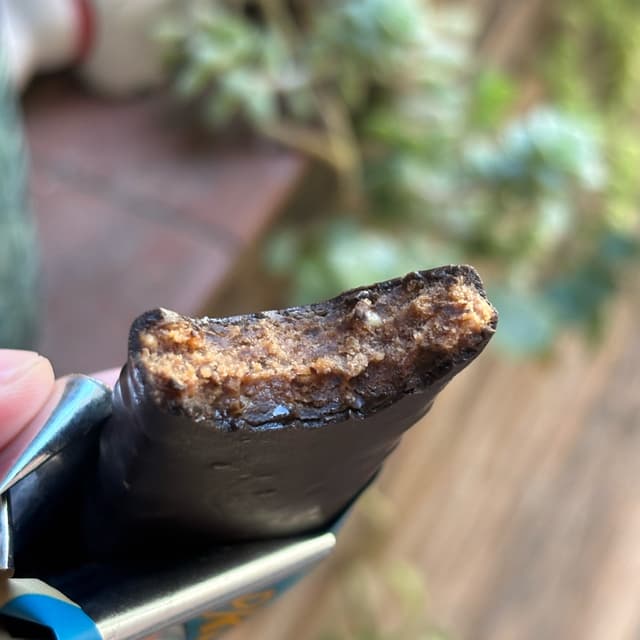 Muy similar a las de Crudda Bar. De sabor rica, de textura chewy. Apta celiacos✅ Ingredientes: datiles, mani, pasas de uva, proteina de lupino, nueces, baño de reposteria de chocolate👎🏽, arandanos y cacao. Comparando la tabla nutricional esta barrita aporta 10 g de proteinas, tiene 18,6 mg de carbo, 11 g de azucares totales, 23 g de sodio. A diferencia de las marca Crudda que tienen 9 g de prot, 9,3g de carbo, 5,3g de azucares totales, 68 mg de sodio. Será que tiene doble de azúcar porque utilizan baño de resposteria que es de menor calidad y no cobertura dechocolate🥲 Precio: aprox $2000 octubre 2025