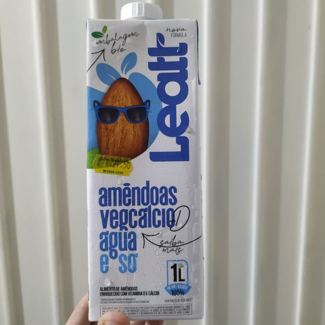 Leite de amêndoas Leatt. Bebida de amêndoas original, sem açúcar. Fiz uma canjica com esse leite e fiz o meu primeiro leite condensado com ele e ambos ficaram perfeitos! 👏🏼👏🏼👏🏼