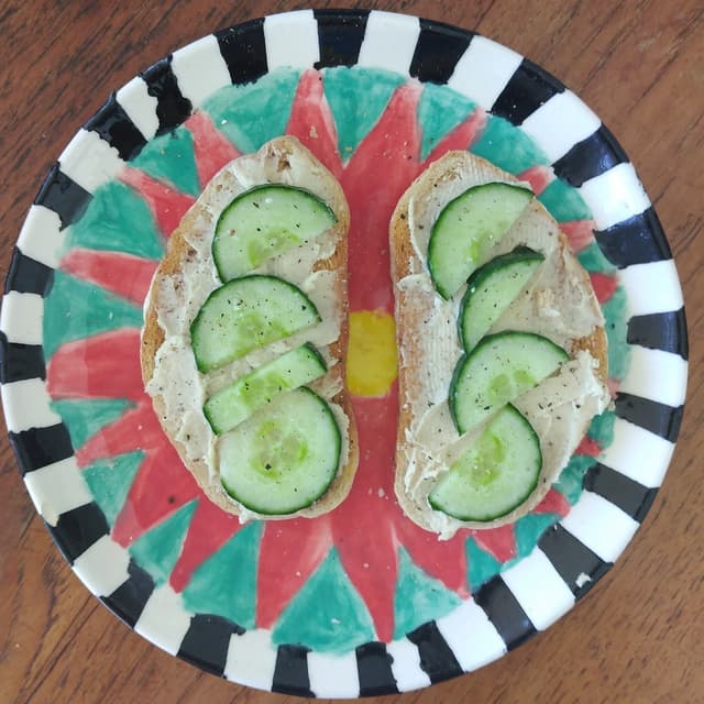 Like a thick cream cheese. It can be sliced, smeared, or stirred into hot dishes like pastas or risottos. This one is flavoured with liquid smoke and sprinkled with smoked, toasted cashew dust for some serious yumness!