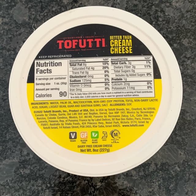 The best vegan cream cheese on the market. Definitely check where you buy it because sometimes it’s a good deal and sometimes it’s not. But it makes me happy because it reminds me of having a bagel and cream cheese when I was younger.