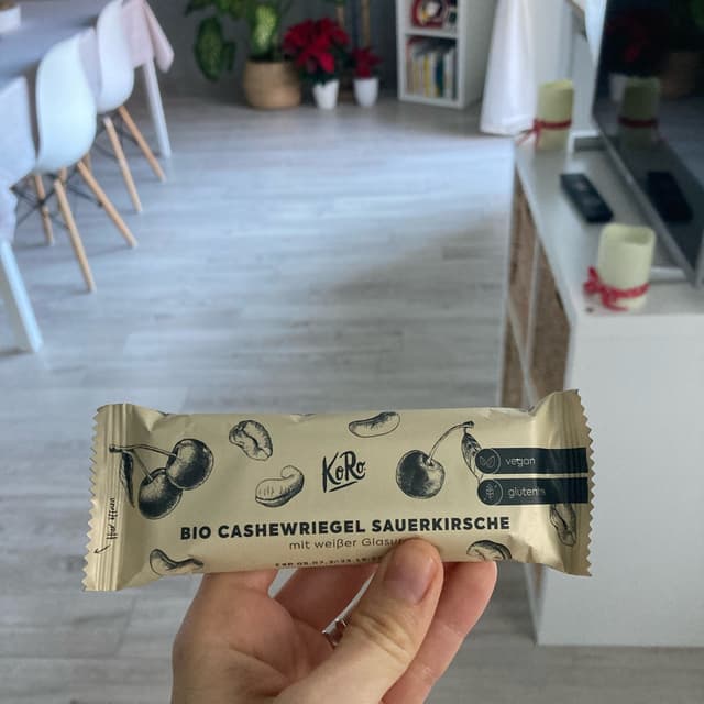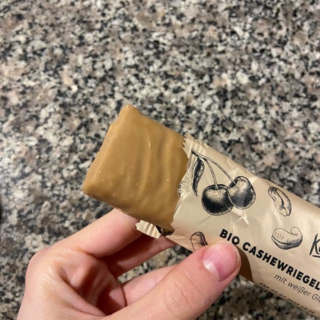 Barrette agli anacardi e ciliegie 🍒 Non sapevo cosa aspettarmi, ma mi sono piaciute molte. La copertura è una sorta di cioccolato bianco speziato. Il ripieno sa di ciliegia ed è molto gradevole. Consiglio per variare dal cioccolato.
