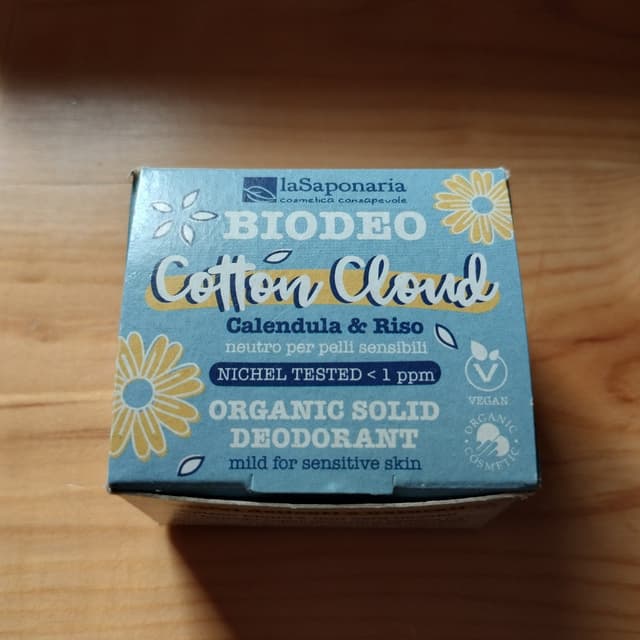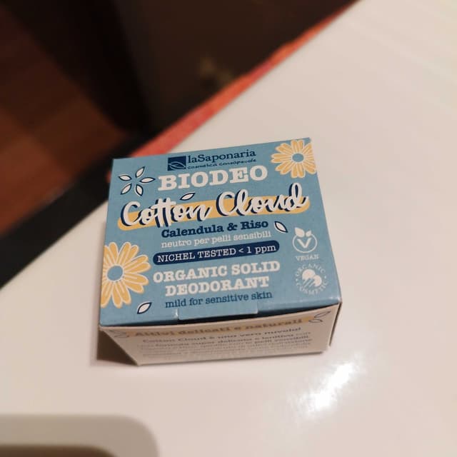 Prodotto meraviglioso ha passato il test giornata estiva con temperatura insopportabile spostamenti in città in bicicletta lavoro di fatica fisica e pratica di yoga intenso serale, super promosso anche per le giornate preciclo. Al contatto con la pelle diventa cremoso ma non lascia aloni bianchi. Questo è senza profumazione e l'unico della linea senza bicarbonato. Packaging di cartoncino.