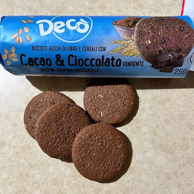 Ottimi biscotti simil-gran cereale, ma al cioccolato. Sono fragranti, dolci al punto giusto, deliziosi sia inzuppati nel latte caldo (il modo in cui li preferisco) sia assoluti da sgranocchiare a merenda. Hanno un prezzo contenuto e sono facilmente reperibili se avete un punto vendita Decò vicino casa. Consigliati!
