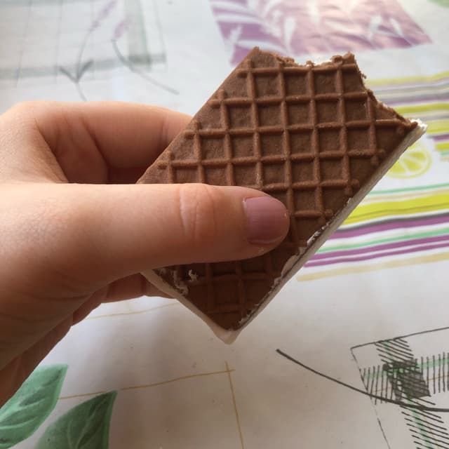 Biscotto gelato senza infamia e senza lode. Il gelato dentro è il classico bianco alla soia mentre il biscotto non era buonissimo, però si mangia dai…