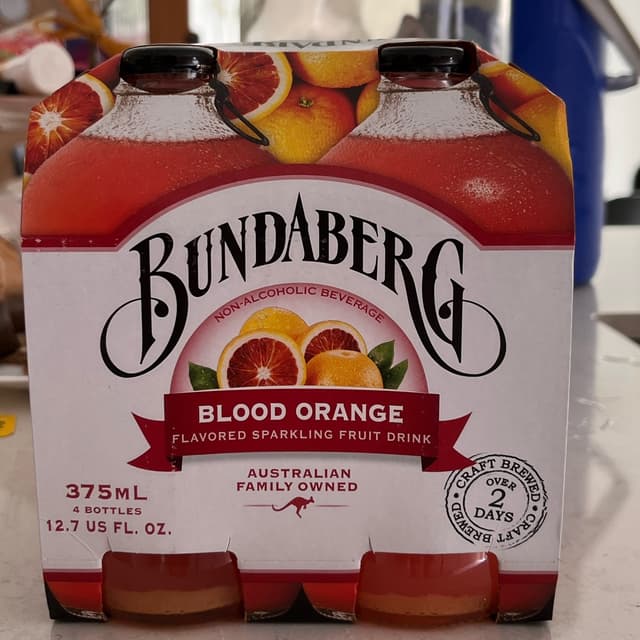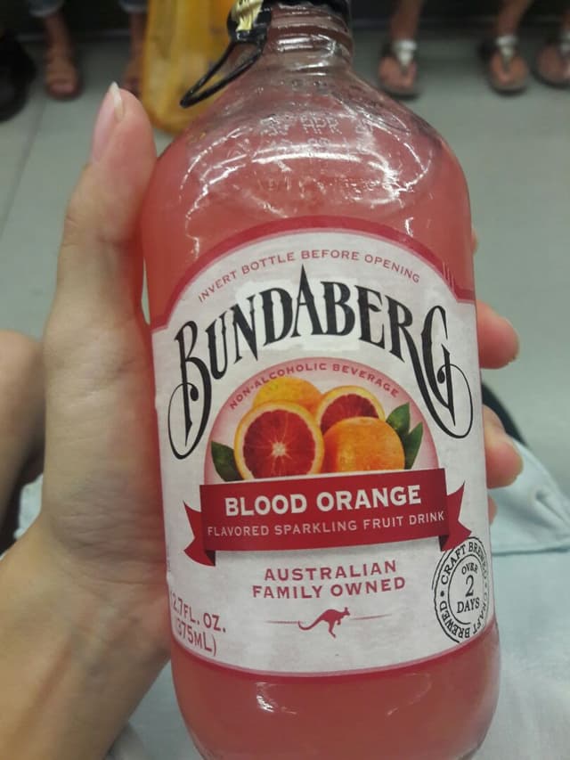 It's nicely fizzy and sweet with the tangy sourish taste of natural blood orange. A small percentage of blood orange concentrate is added.