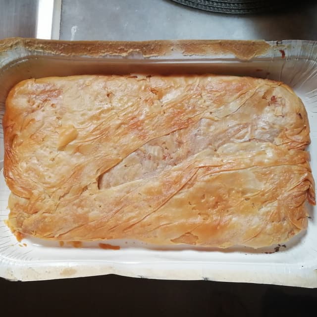 This bougatsa (pie filled with soya minced meat) was really nice! It's a good option for breakfast or for dinner. I will buy it again for sure!