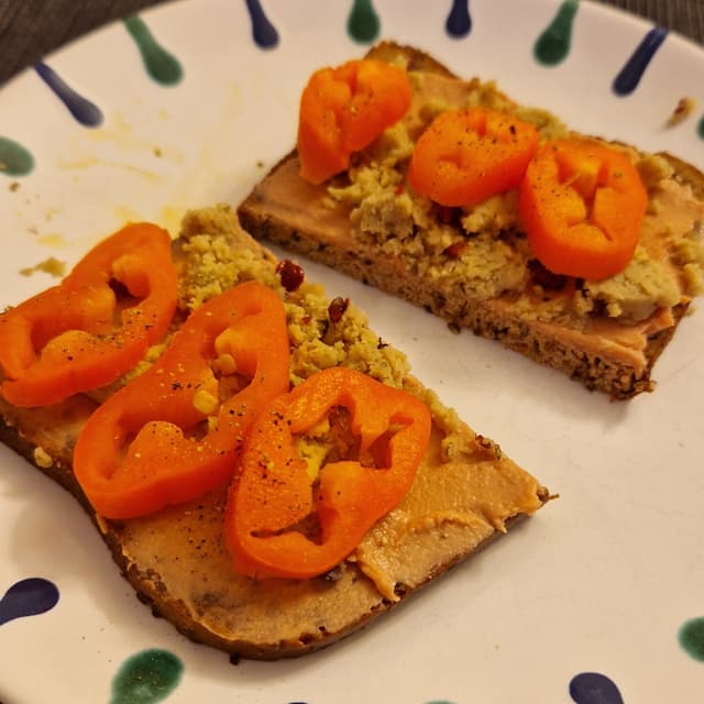 ok i never liked meat spreads and i don't really know why i bought this (i guess i was hungry when grocery shopping), but i must admit that these are very tasty. not too salty but still quite umami. made of soy flour and cashews. definitely an interesting product. 9g of protein
