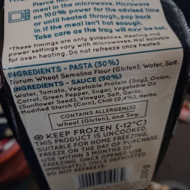 This product had gotten very icy and this affected the texture of the pasta. The flavour was spicy and enjoyable though