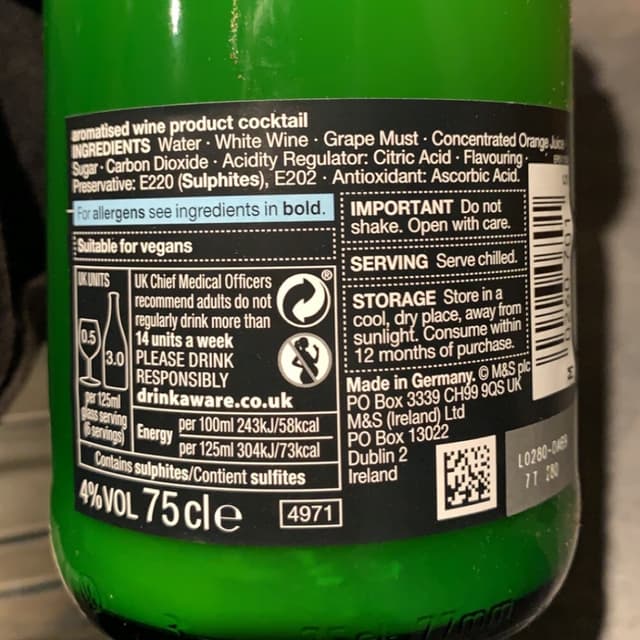 plantboi5 years agoSee TranslationPretty standard bucks fizz. A few pounds or so. Pretty cheap. Would definitely buy again although I prefer the clementine and cranberry option. Splendid.0