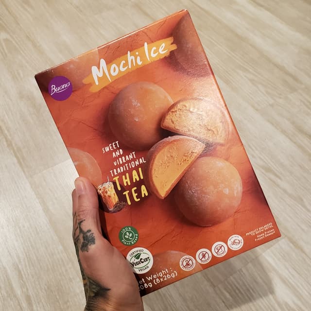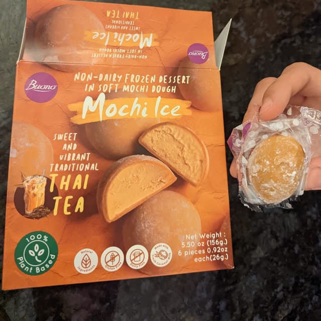 This isn’t really my flavour, bought it out of curiosity really. #mochi #thai #tea 🍵flavour. I’m not really into tea anyways, tastes exactly like it too. But I love Buono, great quality mochi, also #soyfree 😃 #coconut based 🥥 Kept in the freezer. Idk why but I can’t stand mochi, unless it’s frozen 😅 I wish there was a database of emojis of all foods 🥲 📍Bought in Welcome Asia, Boortmeerbeek