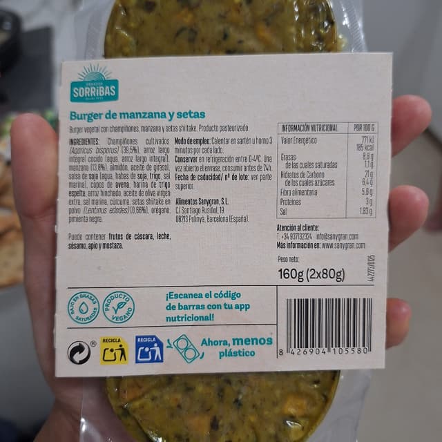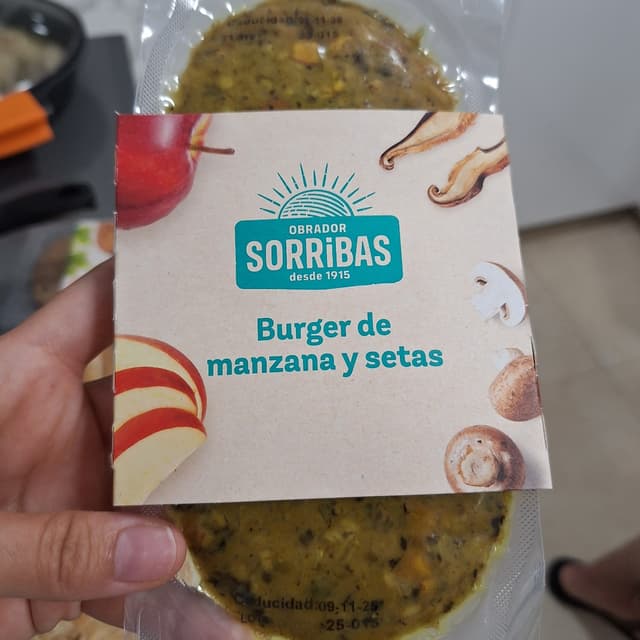 Paquete de dos hamburguesas hechas a base de manzana y setas. Deliciosas y muy jugosas. Un gran producto. #veganisnotscary #govegan #vegan