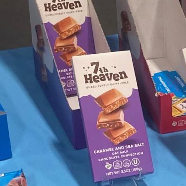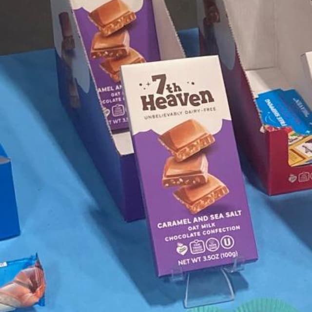This is the last booth from the Vegan Festival that I am reviewing. They are a chocolate company that made it their mission to bring the delicious taste experience of regular chocolate into more sustainable and compassionate vegan chocolate. I was very impressed by their creative combinations and wonderful taste and texture experiences they provided. This is a really nice chocolate bar with caramel and sea salt. The salt is a good balance that brings out the delicious flavors of the chocolate and caramel. Each bar has 18 squares. One (33g) serving of 6 squares provides 180 calories from 10g of fat (6g of saturated fat from cocoa, coconut and rapeseed), 20g of carbs and 1g of protein. Selling for, I believe, $5 or $6 a piece at the Vegan Festival, you could also purchase a combination of eight bars for $20 there. On their website, they sell for $6.50 a piece. They are starting to be carried by Stop & Shop, but I have yet to see this flavor chocolate bar there. #chocoholic #chocolate #veganisnotscary #veganchocolate #caramel #saltedcaramel #chocolateandsaltedcaramel #oatmilk #ditchdairy #oatmilkchocolate #sustainable #crueltyfree #glutenfree #senzaglutine #singluten #glutenfrei #sansgluten #glutenfreevee