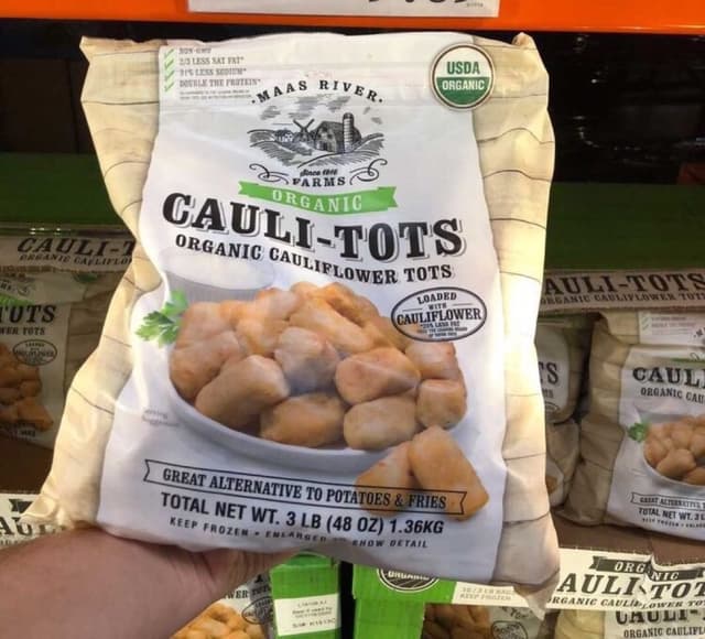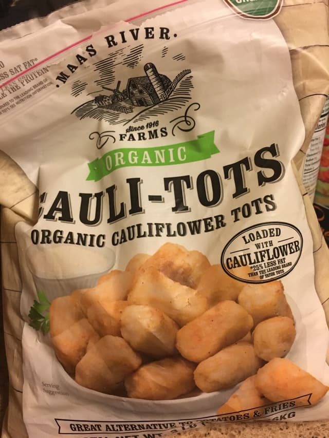 Organic Cauliflower tots (~potatoes and fries) - good source of protein