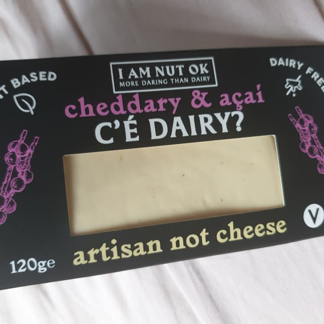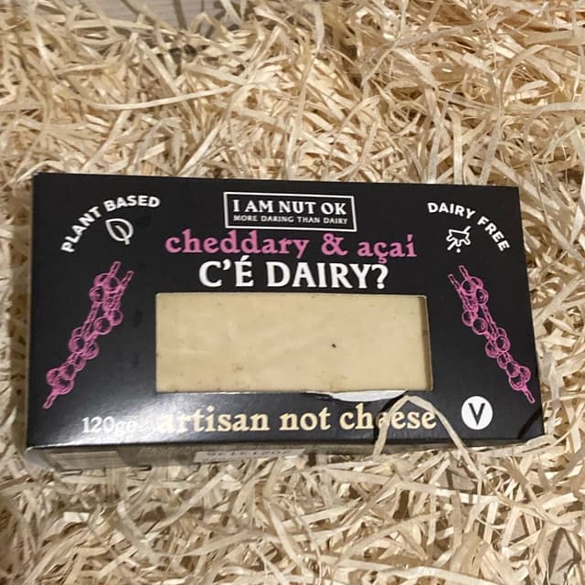 Cheddar-style cheese alternative made with cashew, flavoured with açai. The taste of açai was rather subtle (at least for me) but I liked the overall taste. #februdairy