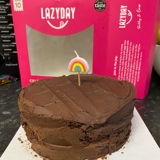 Three layers of rich chocolate sponge, filled and covered with chocolate frosting and drizzled with Belgian dark chocolate.