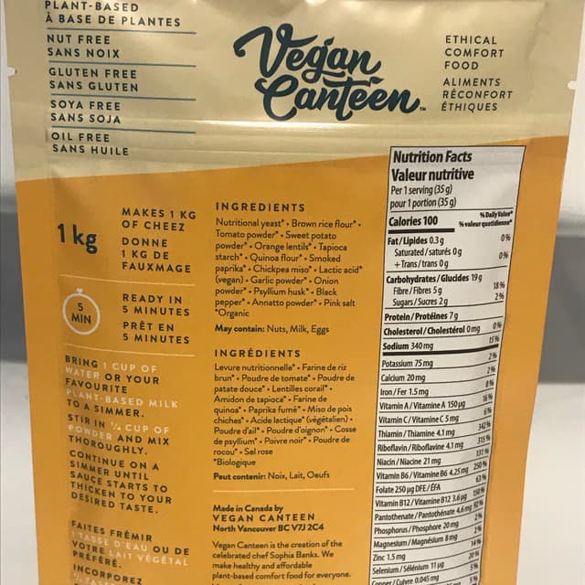 vegan4lyfe5 years agoSee TranslationThis is a new company based on Vancouver BC and it was okay, maybe I needed to add more liquid to the powder to make it cheesier0