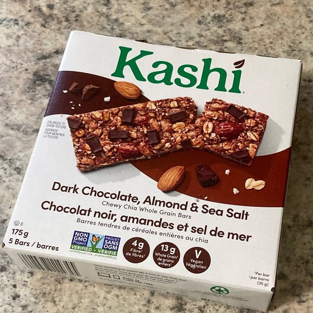 Kashi bars are all delicious! This has a sweet chocolatey wholesome flavour. I love the chewiness. #granolabar #chocolatealmond #snackbar #vegansnacks
