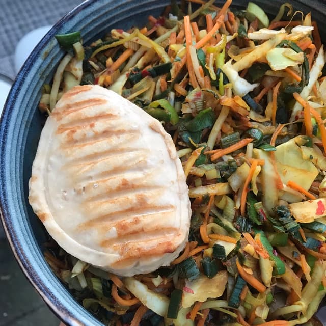 Whilst I don’t buy many meat alternatives, as this was heavily reduced I thought I’d give it a try. Wish I’d bought the other reduced pack now! I’ve been vegan for almost three years - this tastes slightly different to how I remember chicken tasting but the texture is almost spot on. A quick and easy meal using up some leftovers whilst my daughter’s away (otherwise there’d have been more veg on my plate). I’d definitely buy the Vivera Plant Chicken Breast Style again, even at full price. I’m not much of a salad lover in summer, but I do love buddha bowls and this would make a great addition. I’m also thinking this could be a substitute for turkey at Christmas rather than buying a no beef wellington, which is far too big for just me.