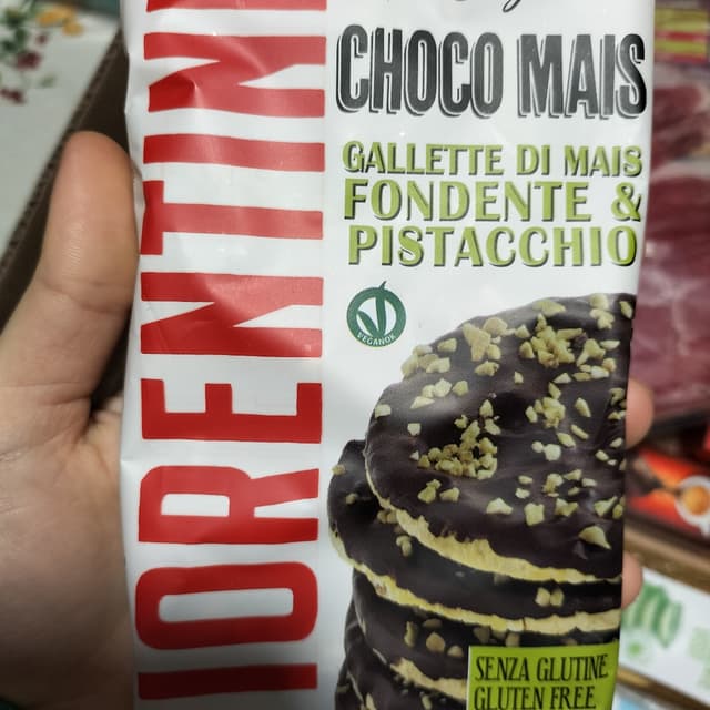 Queste gallette Choco Mais sono un piccolo piacere senza sensi di colpa: corn cake croccante al mais e ricoperta di cioccolato fondente con pepita di pistacchio. Il cioccolato è ben bilanciato, né troppo dolce né stucchevole, e la granella di pistacchio dona una nota croccante raffinata . Un’ottima idea snack tra pasti o con il tè pomeridiano: leggere ma appaganti, senza glutine e vegane. Simpatico e gustoso connubio di texture e sapori. #vegansweets #freepalestine