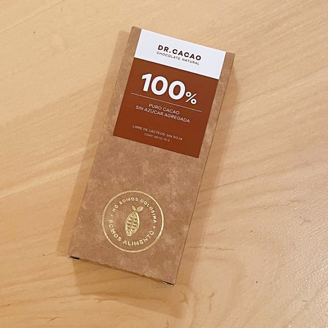 Chocolate 100% cacao. Rico en antioxidantes e ideal para quienes les gusta lo amargo