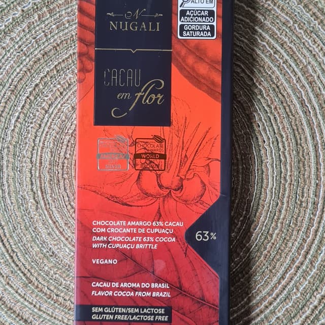 Chocolate Amargo Vegano 63% Cacau com crocante de cupuaçu, envolvido pelo chocolate feito com cacaus brasileiros de variedade Trinitários e Scavina, ricos em sabores e aromas frutados, sem glúten, sem lactose e seus derivados. Amei!