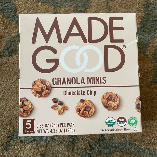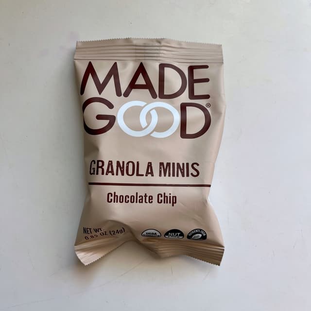 MadeGood's Chocolate Chip Granola Minis are a vegan, gluten-free, and organic snack that offers a delicious taste. These bite-sized granola balls contain hidden veggies and wholesome ingredients, making them a guilt-free treat. With a combination of chocolate chips and dried apple pieces, these minis are perfect for satisfying your cravings while providing essential nutrients. Whether you're looking for a quick snack or an addition to your lunchbox, MadeGood's Chocolate Chip Granola Minis are a great choice. According to reviews, these minis are both satisfying and nutritious.