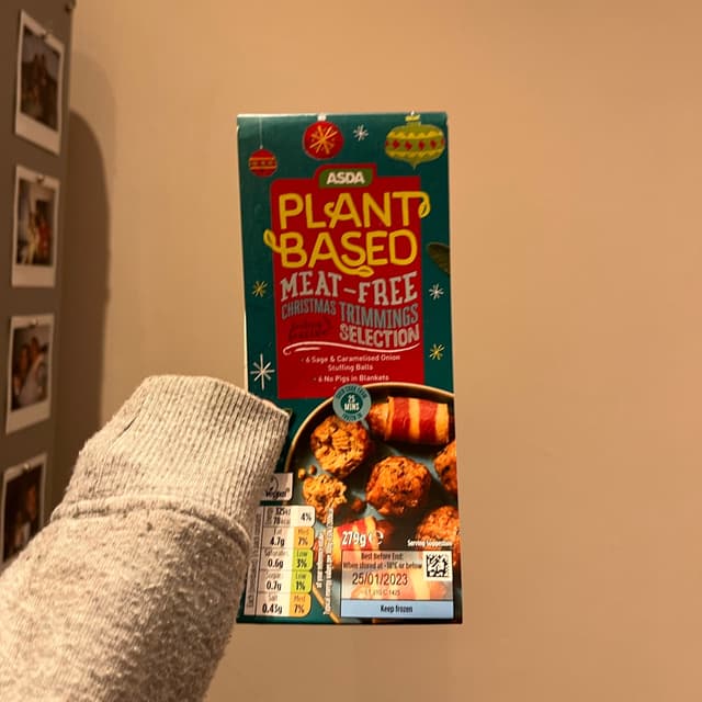 Meat free pigs in blankets and stuffing balls from Asda - cook in the oven from frozen! Served these over Xmas to my carnivore BF who absolutely loved them (as did I!) I wish I’d bought more before Xmas as doubt I’ll find them for a year now 😢 #veganuary Sorry for no pic of the food itself, ate them all up too fast!!