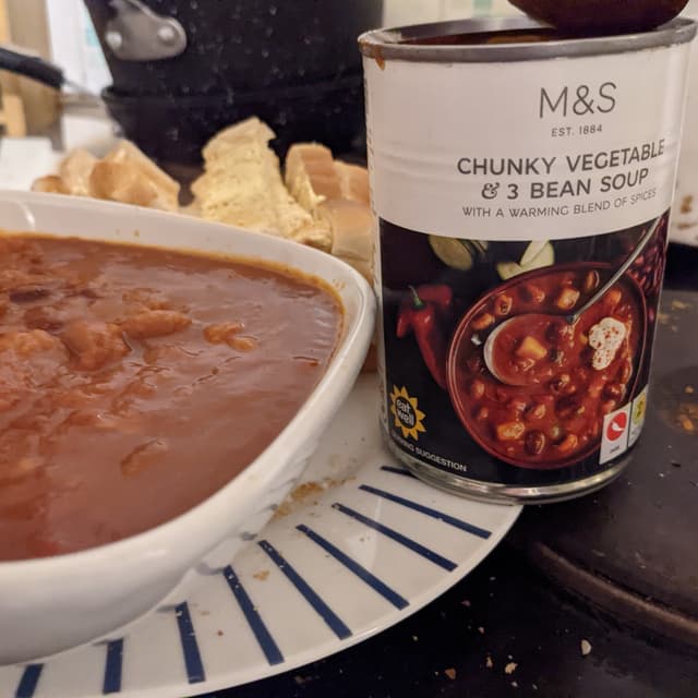 This #soup from #marksandspencer was full of flavour, though since the main taste was tomato, perhaps I still preferred the other soup I tried before. It contained lots of different types of beans and some chopped veg too, and the can filled my soup bowl perfectly :) #vegansoup #vegantomatosoup #vegetablesoup #soups #cannedfood #canned #cannedsoup